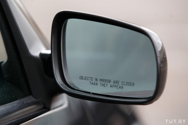 Надпись на боковом зеркале "Objects in mirror are closer than they appear". Перевод.