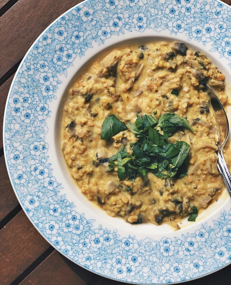 Привет, друзья!👋 Сегодня я приготовила для вас ещё один простой рецепт, всё как вы любите - минимум ингредиентов, максимум вкуса. Готовится быстро, все продукты доступные, рецепт однозначно заслуживает вашего лайка ❤️ ————————————— 🍲Грибное рагу с чечевицей ————————————— Ингредиенты: ✅ Луковица - 1 шт. ✅ Грибы (любые на ваш выбор) - 250г. ✅ Оранжевая чечевица - 100г. ✅ Растительное молоко - 50 мл. ✅ Тимьян сушеный -1/2 ч.л. ✅ Соль по вкусу. Приготовление: 1️⃣ Луковицу нарезаем мелко и обжариваем до прозрачности (я использую масло авокадо). 2️⃣ Добавляем нарезанные грибы и тушим до отделения соков. Добавляем чечевицу и полстакана воды. Тушим минут 10. Добавляем молоко и тушим все вместе до готовности. Добавляем соль и специи. Приятного аппетита ❤️