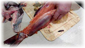 Горбуша – одна из самых доступных и популярных рыб из семейства лососевых. Это обусловлено не только тем, что она присутствует на прилавках практически всех магазинов, но и ее небольшой ценой. Несмотря на то, что в магазине можно приобрести готовое филе этой рыбы, покупка и самостоятельная разделка горбуши будет более выгодной экономически. А также добавит приятный бонус в виде головы хвоста и плавников, из которых можно приготовить отличную уху или другой рыбный суп. Исходя из этого получается, что информация о том, как чистить горбушу будет очень полезной. Подготовка Чаще всего в магазинах продают замороженную горбушу. Опытные в этих вопросах хозяйки советуют перед чисткой разморозить ее, но не полностью. В полуразмороженном состоянии чистить рыбу будет удобнее. Для этого рыбу кладут в пакет и опускают в посуду с холодной водой. Через несколько часов рыба придет в нужное состояние и можно начать ее чистить. Еще одним явлением, досадно мешающим процессу, может стать слизь, покрывающая