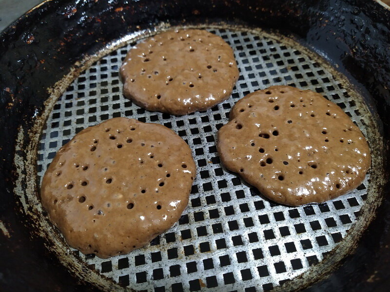 Полюбились в нашей семье панкейки – по сути это оладьи, только более пористые и жарятся без масла. Жарить их можно как блины – на всю сковороду – это дело вкуса каждого. Теперь они часто заменяют нам полноценный ужин. А поскольку я люблю экспериментировать, то не смогла удержаться и с панкейками. Сегодня поделюсь двумя новыми и необыкновенно вкусными вариантами их приготовления. Шоколадные панкейки «Белочка» Для приготовления понадобится: 1. 1 яйцо, 2. 1 пачка ванилина или ванильного сахара, 3. 1 чайная ложка разрыхлителя теста (можно заменить содой, погашенной уксусом), 4. Соль – на кончике чайной ложки, 5. 3 столовые ложки сахарного песка (или по вкусу), 6. 2 столовые ложки растительного масла, 7. 1 стакан молока, 8. 1 стакан муки (плюс 2-3 ложки – нужно смотреть по консистенции), 9. 1 столовая ложка натурального качественного какао порошка, 10. 1-2 столовые ложки измельчённых и предварительно обжаренных орехов (у меня арахис, но брать можно любые), 11. Варенье или джем (у меня ар