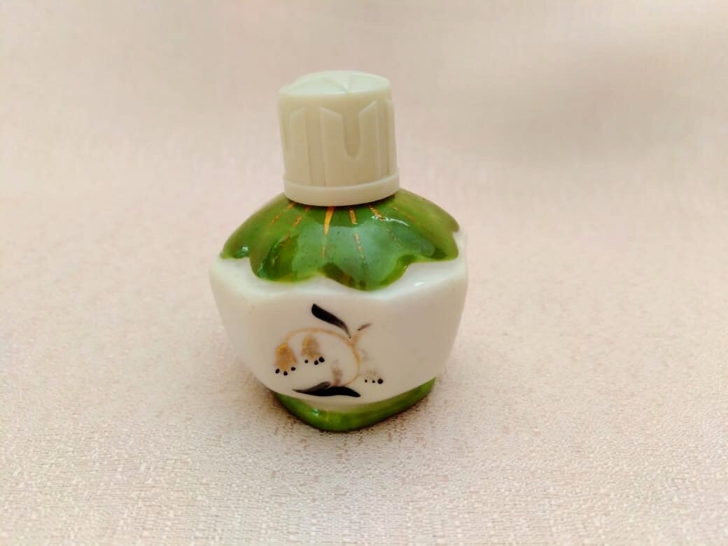 Мне почему-то очень нравятся миниатюрные вещи. А если их еще можно как-то использовать в быту в нашем современном мире, так это просто предел мечтаний. Сегодня хочу показать вам флакончик для духов. Я не совсем уверена, что он для парфюма, но другого применения я просто не нахожу. Он очень маленький, высота всего 4, 5 см. Флакон называется «Ландыш», ручная роспись. Фарфор, пробочка пластиковая. Покругу у пробки рельефный узор в виде кремлевской стены, а наверху выпуклая звезда. Клейма нет, но в интернете нашла информацию, что это ЛЗФИ- Ленинградский Завод Фарфоровых Изделий. Вряд ли сейчас кто-то, купив парфюм, будет переливать его в такой флакончик, да я думаю, что и в то время производили его, скорее всего, как сувенирный, нежели утилитарный. Но тем не менее применение найти можно и сегодня. Я, например, храню в нем розовое масло, сделанное собственноручно из лепестков роз. О заводе ЛЗФИ я уже писала раньше, когда показывала шкатулку Лев, и об истории духов и фарфоровых флаконов.