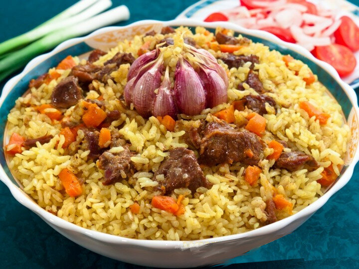 К приготовлению плова надо подходить правильно, один не верный шаг и получиться ни плов, а обычная рисовая каша. В плове рис должен быть рассыпчатым, ведь рис -основа этого блюда.. У каждого народа свои секреты приготовления этого шикарного блюда, но не исключена и фантазия. 1. Узбекский плов. Для приготовления этого вкуснейшего блюда нам необходимо рис (800г) замочить на 2 часа в слегка подсолённой воде, пока рис замачивается, следует приступить к мясу. Берём мясо, желательно баранину (600 г), режим на кусочки и обжариваем до образования золотистой корочки. Добавляем в мясо лук (250 г) нарезанный полукольцами. Обжариваем в течении 5 минут и добавляем морковь (650 г) нарезанную соломкой. Всё хорошо перемешиваем и добавляем воду. Соотношение воды и риса 1:1. Солим, добавляем специи по вкусу и тушить пол часа. Как время истекло, закладываем ровным слоем в котёл рис и варим не накрывая крышкой до полного выкипания воды. Собираем в середину горкой плов и тушим ещё 40 мину, до полного при