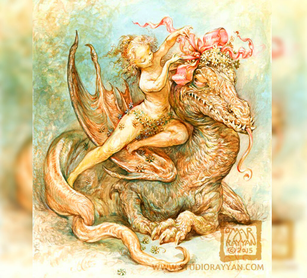 Что будет, если на одной картине поместить милейшую девушку и жуткого монстра? Нет, разумеется это не сцена из ужастика, ведь наш сегодняшний гость преподносит все это в романтической манере художников Возрождения. В итоге получаются впечатляющие своей живостью и красотой работы художника Омара Райана. Родился он в Иордании, и, как часто бывает с талантливыми людьми, быстро переехал в США, где благополучно получил степень бакалавра изобразительных искусств. И, разумеется, такой талант в тени долго находиться не мог. Омар Райян участвовал в престижных выставках и публиковался в дорогих журналах, названия которых русскому человеку ни о чем не скажут. Хотя достаточно сказать, что он был одним из создателей общей атмосферы небезызвестного фильма "Хроники Нарнии". Но настоящее удовольствие художнику приносит рисование некоммерческих картин для развлечения себя и зрителей на своем сайте. На них преобладают сюжеты из классических сказок, а также фэнтезийные мотивы. Особенно ему нравится писа