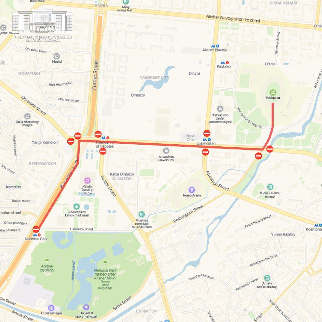 Узбекистан, Ташкент – АН Podrobno.uz. В Ташкенте завтра, 18 октября, перекроют ряд центральных улиц, сообщает корреспондент Podrobno.uz. "18 октября в столице будет проведен Студенческий марафон. По этой причине, с 10:30 до 11:30 часть дублированной дороги проспекта Бунедкор от въезда на площадь литераторов до улицы И. Каримова, часть улицы И.Каримова до пересечения улиц Бешёгоч и Шерият боги, часть улицы Шерият боги до стадиона "Пахтакор" будет перекрыта для автомобильного движения", – сообщили в ГУВД. Не пропусти ничего важного: больше новостей в Telegram-канале Podrobno.uz.