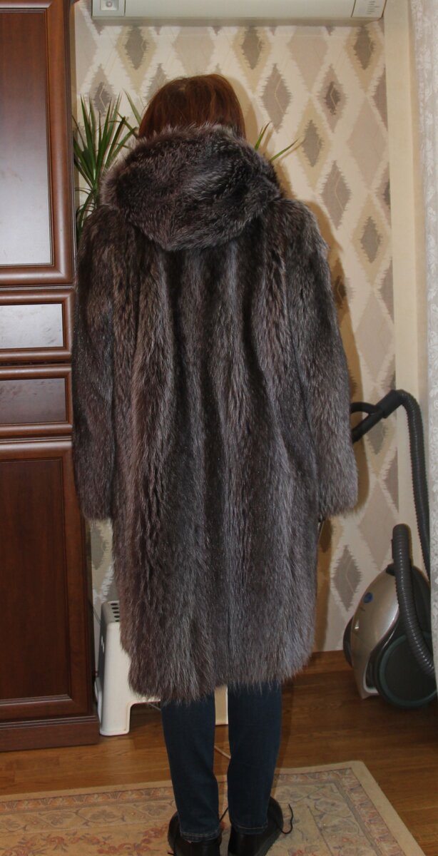 Очень хорошая енотовая шуба. В этой шубе слились все достоинства, которые так важны для мудрой и красивой женщины.