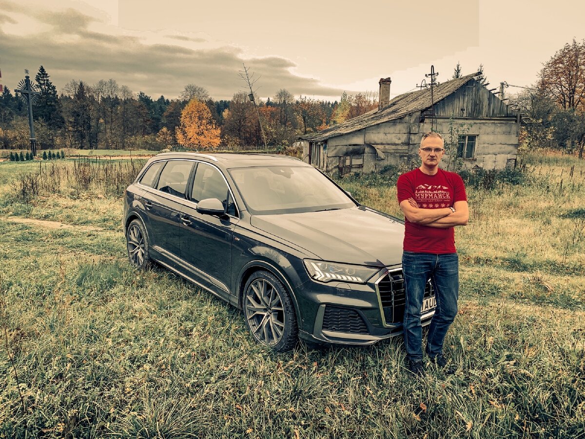 Это новый Audi Q7 2020 года модель. Кто-то может возразить и сказать, что ничего тут нового нет. Но я с ним не соглашусь. Тут всё новое и об этом подробнее. Внешний вид полностью соответствует тренду который развивает компания (новая решётка, новые фары, новый бампер, новый капот): Вид сбоку стал более «раздутым»: Вид сзади преобразился (новый бампер, новые фары, совершенно новый стиль): Салон изменился настолько, что с прошлым поколением нет смысла сравнивать: Впереди при росте в 1.95 я разместился очень удобно и комфортно. Отдельное спасибо за МЕГАкомфортное кресло: Сзади места стало чуть больше и мне это особенно важно (я не упираюсь головой и ноги помещаются достаточно удобно): Управление новым Audi Q7 ожидаемо и предсказуемо. Несмотря на сил нын изменения в дизайне, в Ауди оставили МЕГАкрутую фишку - Quattro. Автомобиль стоит на дороге как вкопанный, в повороты входит без «покачиваний», сцепка с дорогой очень хороша на асфальте, мокром асфальте, песке, гравийке, мокро