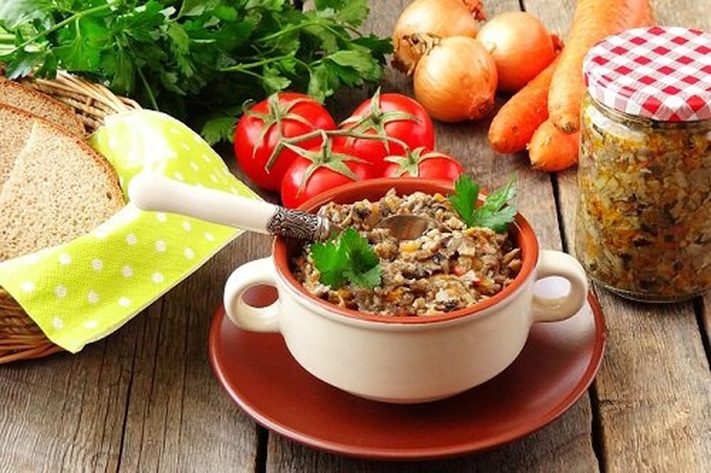 Икра из грибов – красивое и полезное блюдо русской кухни. Для приготовления икры подходят разные виды грибов, свежие, замороженные или даже сушеные. Грибную икру можно подать как в качестве праздничного украшения стола, так и в обычные дни на завтрак, обед и ужин. Ею можно начинить блины или тарталетки; добавить в суп, кашу, картошку или макароны;использовать как приправу для мясных блюд. 1. Грибная икорочка с луком и чесноком 1 килограмм свежих грибов;