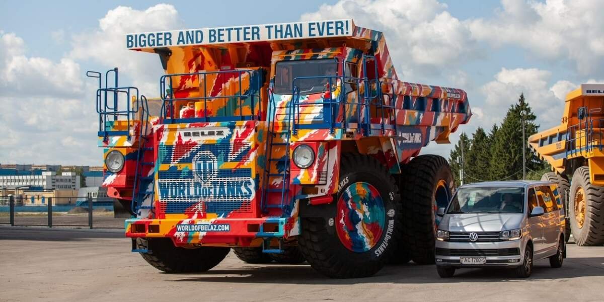 Никогда не хотели себе карьерный самосвал прикупить? Ну тот, который высотой с трёхэтажный дом и таскает девяносто тонн груза? Если да, то есть возможность получить его в уникальной раскраске. Машина, расписанная в стиле игры World of Tanks, красовалась на фестивале «Wargaming Fest: День танкиста», а потом отправилась в продажу. Шестнадцатого октября 2019 года на одном из торговых сайтов Рунета появилось объявление о продаже самосвала БелАЗ-75585. Мало того, что сама эта громадина смотрится, мягко говоря, экзотично на фоне привычных подержанных «газелей» и «бычков» с небольшим пробегом, так ещё и окраска у него совершенно уникальна. Машина была расписана специально для фестиваля «Wargaming Fest: День танкиста», который проходил 15 сентября в Минске. Макет уникального «камуфляжа» создали дизайнеры компании Wargaming, а воплотить его в жизнь помогли художники из команды TAKTAK crew и сотрудники БелАЗ. На преображение самосвала ушло восемьдесят часов труда — десять полных раб