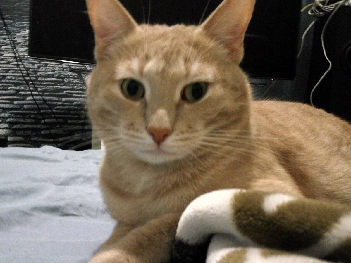 - Муав?- Робко пискнул, не рискуя запрыгнуть на кровать. Одни уши только торчат.