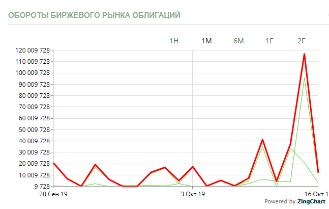 График объемов торговли. Сайт belinvest.by. Раздел ОБЛИГАЦИИ.
