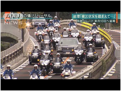 Премьер-министр Японии АБЭ Синдзо: «Что касается парада, то, принимая во внимание ситуацию с последствиями стихийного бедствия, мы сейчас рассматриваем его перенос на более поздний срок. Новая дата в настоящее время определяется».