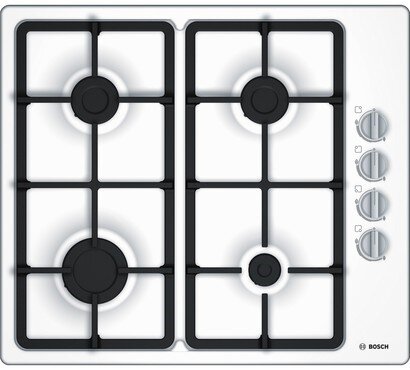Если вы установили газовую варочную поверхность — например, классическую эмалированную белую Bosch PBP6C2B90 с 4 конфорками или Korting HGG 485 CTW с 3 конфорками типа «газ на стекле», — сначала убедитесь, что кран на трубе открыт. Затем достаточно нажать на поворотный переключатель и повернуть его — газ загорится автоматически при помощи электроподжига. Если же поджиг «замкнуло», проверьте, не попали ли на переключатель влага, жир или остатки пищи, и тщательно прочистите его, предварительно отключив плиту.