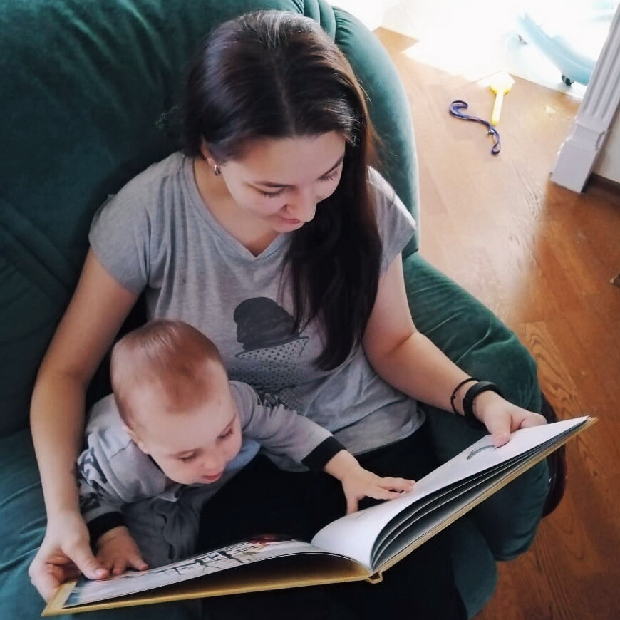 Иллюстратор, кстати, @e.gapchinska. Наверняка, многие из вас видели ее картинки с чудесными и неповторимыми ангелочками. Ее стилистика идеально подошла для детской иллюстрации. Санни с огромным удовольствием разглядывает каждую страницу!