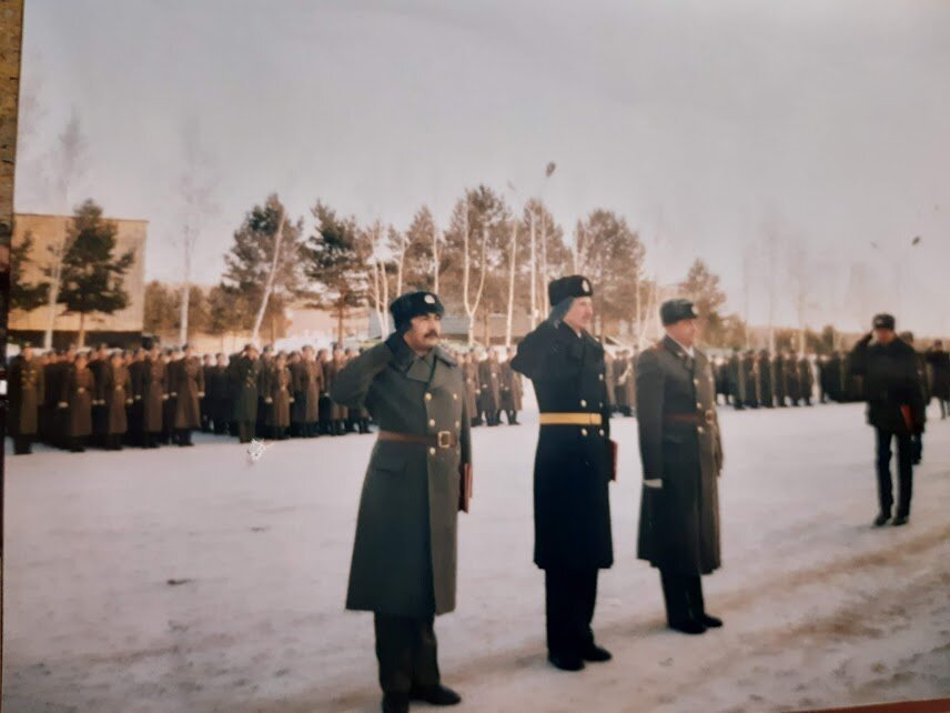 Штаб оказался за пределами военного городка. Мы шли по дороге в сторону АЖГ (читай административно-жилой городок) в колонну по одному и в ногу. Идти было не далеко, так как АЖГ располагался прямо за военным городком. По пути следования я видел несколько трех и пятиэтажных домов, детский сад, магазинчик, кафе. Этакий небольшой поселок для офицеров и гражданских. Дошли до штаба. Он располагался на центральной площади, а рядом с одной стороны был гарнизонный дом офицеров, с другой продуктовый магазин.