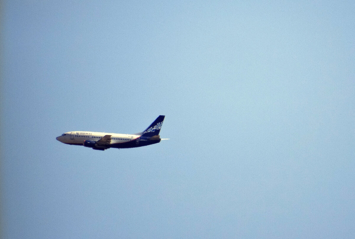 Борт Qatar Airways. Модель самолёта разобрать не могу. Он слишком высоко