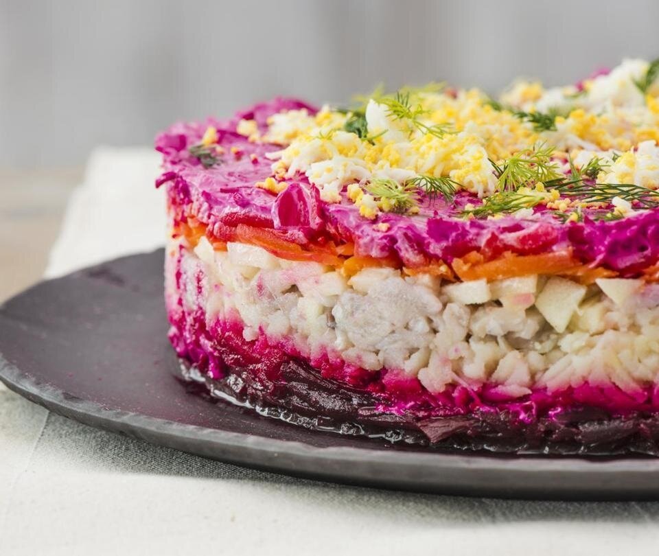 Не представляю жизнь уже без этого классного салата – селедка под шубой. Все делают по разному. Я уже просмотрела рецепты в интернете, но, думаю, что моя селедка под шубой самая простая. Хотя она и удивительная, ведь приготовить нужно целых семь слоев! Поехали! Овощи нужно отварить. Варятся они от 20 минут до 1 часа. Картофель быстрее всего варится, потом уже идет морковь и свекла (она дольше всего). Я варю все в одной кастрюле и вынимаю по мере готовности. Потом нужно овощи очистить. Не забудьте очистить селедку от костей. Я раньше резала все кубиками и раскладывала по тарелочкам. Так, кстати, вкуснее получается, та же селедка под шубой. Но сейчас я тру на терке, так быстрее можно приготовить любимый салат. Еще меньше посуды марается. Приятного аппетита!