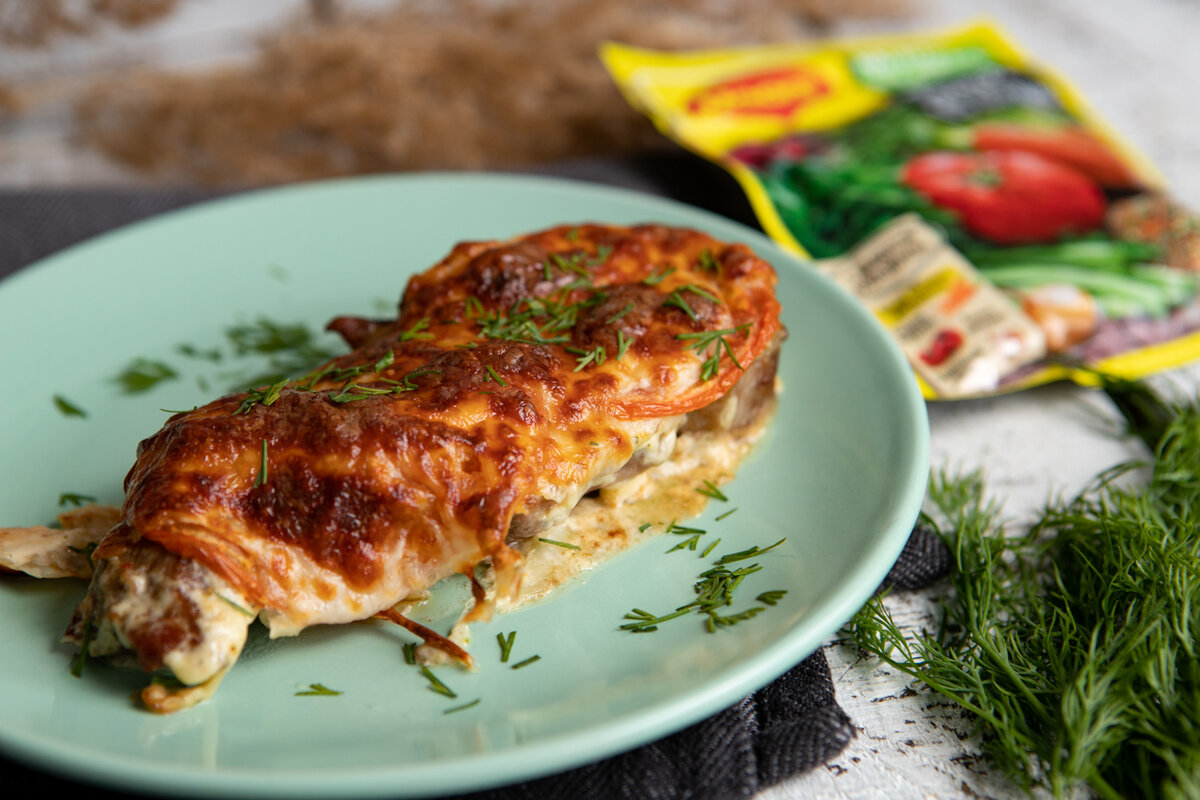 Если у вас нет кухонного молотка, отбивайте мясо обычной скалкой – это очень удобно и эффективно. При желании свинину можно заменить на другое любимое вами мясо. Ингредиенты MAGGI® Приправа 10 овощей – 10 гр Свинина – 450 гр Майонез – 50 гр Помидоры – 150 гр Сыр – 60 гр Мука – 30 гр Как приготовить Свиную шейку нарезать порционными кусками, отбить кухонным молотком. Сыр натереть на терке. Помидоры нарезать тонкими ломтиками. Смазать сковородку растительным маслом и разогреть. Мясо запанировать в муке и стряхнуть излишки. Обжарить на среднем огне до золотистой корочки с двух сторон. Соединить MAGGI® Приправа 10 овощей с майонезом, распределить на мясе и посыпать сыром. Накрыть сковородку крышкой, уменьшить нагрев и готовить 10 минут. При необходимости можно довести мясо до готовности в разогретой до 180 градусов духовке, поместив в нее сковородку на 10 минут. Подать на стол и украсить зеленью. Приятного аппетита! : ) Заранее благодарим за поставленные лайки! Комментируйте, готовьте с