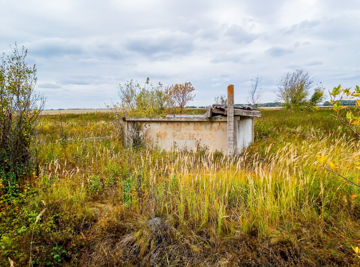 И это еще не все. Рядом с заброшкой находится канава, которую, скорее всего, вырыли для того, чтобы весной с полей стекала вода. Мы через нее просто перелезли. А оказывается, в зарослях через нее была перекинута бетонная плита, образовав своего рода мост.