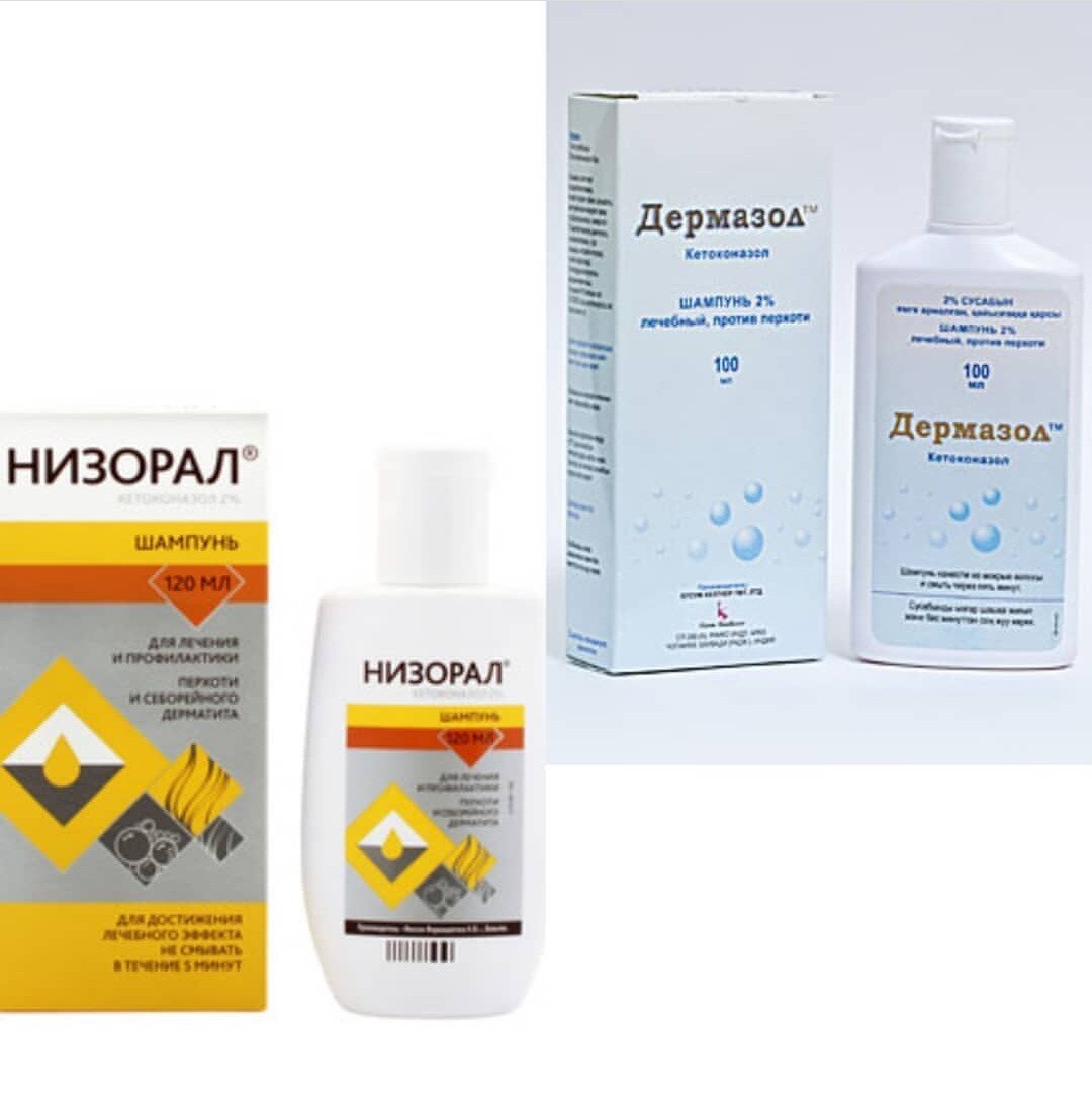 Для лечения и профилактики перхоти, себорейного дерматита и отрубевидного лишая (грибковое поражение кожи). Я покупала Низорал, но есть аналог Дермазол, по отзывам внешне, по запаху и по действию они абсолютно одинаковы, только низорал дороже. Активный компонент: кетоконазол 2%, именно его и не переносят виды грибка вызывающие все эти недуги, лечение быстрым не будет, желательно чтобы его назначил дерматолог, но отличный результат видно уже после нескольких применений. Как по мне самое лучшее средство, которое лечит причину, а не просто скрывает симптомы. Шампунь наносится на место поражения на 3-5 мин, единственный минус❌: сушит волосы, поэтому наносить шампунь лучше только на корни и после нанести на концы увлажняющую маску или хотябы бальзам. В коробочке прилагается инструкция в которой расписано, при какой проблеме по сколько дней применяют.