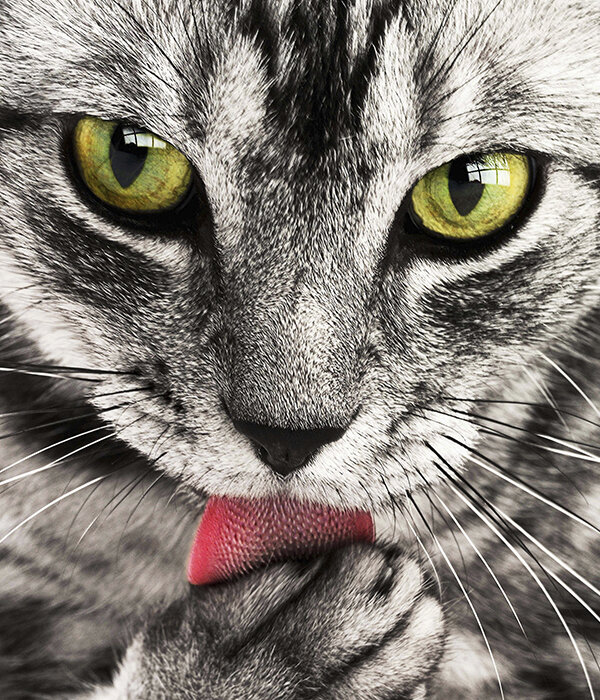 Кошки вылизывают шерсть каждый день. Они тратят на это около 15% своего времени или почти половину времени при котором они бодрствуют! Но что вы можете почерпнуть из этого уникального поведения кошки? Что эта привычка говорит о вашей кошке, и может ли это стать проблемой? Узнайте все ответы на свои вопросы об уходе за кошками, в этой статье. Кошки моют шерсть грубым как наждачная бумага языком, на котором есть специальные "сосочки" (маленькие волосочки). Регулярный уход не только поддерживает кошачью шерсть в безупречной чистоте, но и делает ее водонепроницаемой благодаря кожному салу, распространяющемуся по шерсти. Эта инстинктивная привычка по уходу за собой приводит к тому, что кошка глотает значительное количество меха, который затем извергается в виде мехового шарика. Интересно, что индивидуальный ритуал умывания предоставляет владельцам кошек важную информацию о здоровье и благополучии их питомцев. Уникальный запах Кошки предпочитают собственный запах. Если они получат другой