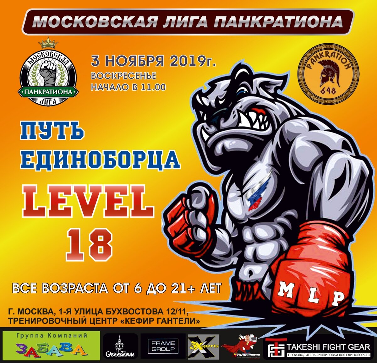 Московская Лига панкратиона - Путь единоборца - 18 (level 18). 03.11.2019г. Бои в ринге (6-15 лет), бои в октагоне (16-21+)! Денежные сертификаты от спонсоров. Командные кубки, кубки-номинации! ДЛЯ ВСЕХ ЧЛЕНОВ МОСКОВСКОЙ ЛИГИ ПАНКРАТИОНА УЧАСТИЕ БЕСПЛАТНОЕ (то есть без уплаты стартовых взносов). Будет снова жара! Всех ждём!