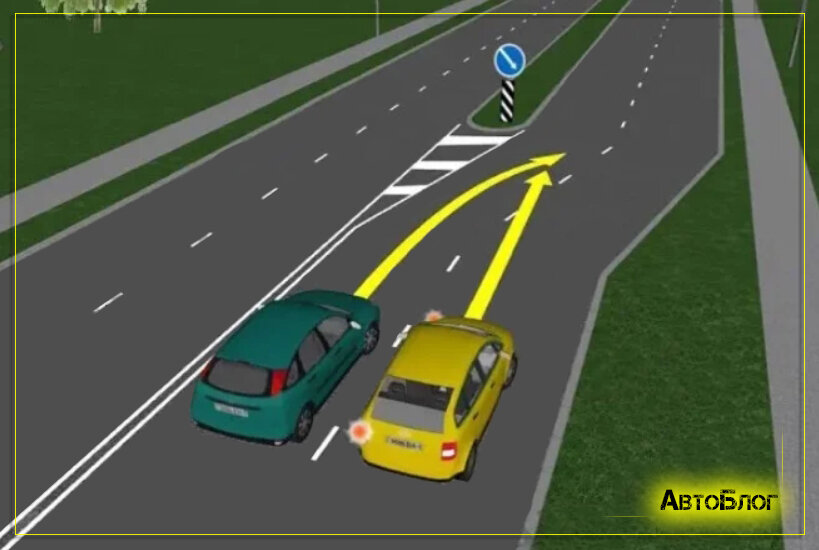 Эта статейка отлично подойдет для водителей, желающих проверить свои знания ПДД. Возможно, ветераны сочтут вопрос очень легким, но сможет ли каждый из них правильно на него ответить? А новичкам наверняка будет полезно разобраться в этой ситуации. Итак, взгляните на изображение: смещение дороги в сторону на расстояние, которое примерно эквивалентно ширине одной из полос движения. С дорожной обстановкой ознакомились, а теперь вопрос: На ком из автомобилистов будет лежать вина за аварию, если она случится в зоне пересечения траекторий движения транспортных средств? Для начала хотел быть сказать о следующем: если бы зеленая машина отсутствовала и это был населенный пункт, то шофер желтой автотехники, перестраиваясь в левую полосу с правой, ни разу не повернув, четко последует дорожному регламенту. А вот использование указателя поворота является необходимым, т.к. ТС меняет полосу, хотя и продолжает ехать прямо. Возвращаемся к изначальной ситуации. В случае существования линий движения, пуст