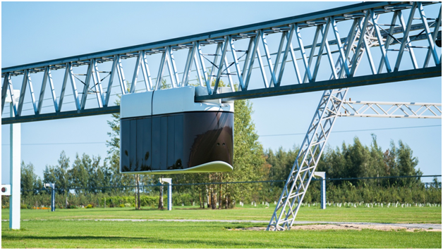 Транспортное средство малой вместимости. Осуществляет движение по суперлёгкой рельсо-струнной эстакаде.