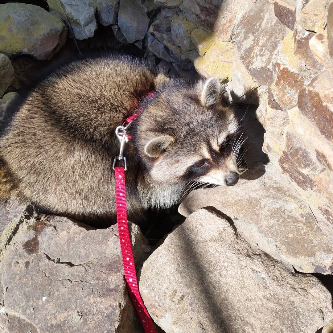 Каждая прогулка - маленькое приключение. Честер может кругами ходить туда сюда, но каждый круг для него интересен. Во-первых, на пути всегда попадается какая-нибудь веточка / ягодка / крошка / пакетик. Это же обязательно надо проверить, попробовать на вкус, поковырять. Во-вторых, обязательно можно куда-то залезть. Неважно куда. На дерево, в траву, под листья на скамейку, в чужую миску и т.д. Гараж - это отдельная тема. Там целый парк аттракционов. Мало того, что можно залезть под машину, на машину, в машину, так ещё и куча всяких интересных полочек, ящиков, мешков. К чему это я??? Пик тому, что за енотом нужен глаз да глаз. Не успеешь оглянуться, а этот полосатый хвост торчит из мешка с картошкой. У Честера два любимых места: каменный фонтан и дырка под брёвнами. В фонтане летом он купается. Осенью там там лежат листья, зимой - грязь и снег. Ну грех не полазить. Под бревна Честер бежит, когда пугается чего-либо. Когда мой папа выходит на улицу, хлопает дверью, Честер ложится на земл
