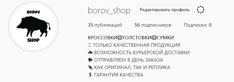 Уже из шапки магазина узнать, что он занимается. По пунктно можно узнать об основы его преимуществах: Есть удобные подразделы в которых постятся отзывы,скидки,наличие товара. В будущем планируется дополнить такими подразделами как ОРИГИНАЛ и РЕПЛИКА. Товары различной тематики, от кофт и ботинок, до худи и кроссовок. На реплику сразу указана цена и доступные размеры. Отправляется наложенным платежом. За ценой на оригинальную продукцию надо обращаться в директ, так как в зависимости от размеры и длины стопы цена может варьироваться. Всем кто желает качественно и стильно приодеться советую данный интернет-магазин.