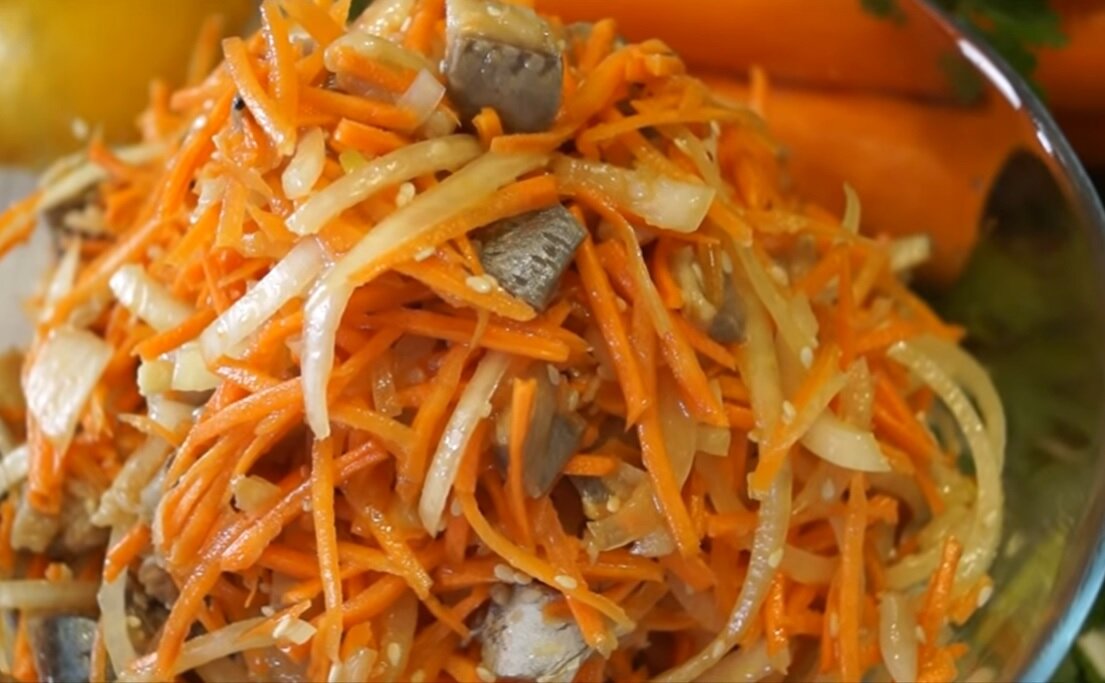 Здравствуйте дорогие читатели, сегодня готовим необычное, но вкусное блюдо из сельди, а называется оно так же необычно, а именно "Хе". Не будем долго тянуть, приступим к приготовлению. Нам понадобится: Подготовим нашу рыбку, для этого, первым делом, снимаем филе, режем на небольшие кубики, а сейчас замаринуем. Просто заливаем кусочки сельди 9% уксусом и оставляем на 30 минут. Пока рыбка маринуется, займёмся овощами. С ними так же все просто... Морковь натрем на терке для корейской моркови, лук нарезаем полукольцами, выкладываем все в одну тару, добавляем мелко нарезанные три зубчика чеснока, посыпаем черным молотым перцем, добавляем масло, соевый соус и посыпаем кунжутом. Осталось лишь все хорошо перемешать и убрать в холодильник минимум на три часа. После чего можно подавать к столу. Всем приятного аппетита, ставьте лайк, подписывайтесь на канал. Спасибо за внимание.