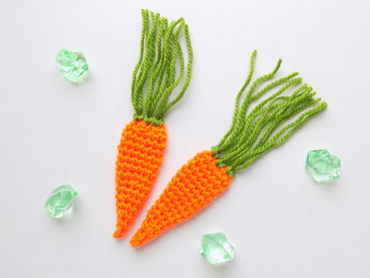 Складываем ее еще раз пополам, после чего с помощью крючка продеваем в верхней части морковки. Фото 12.