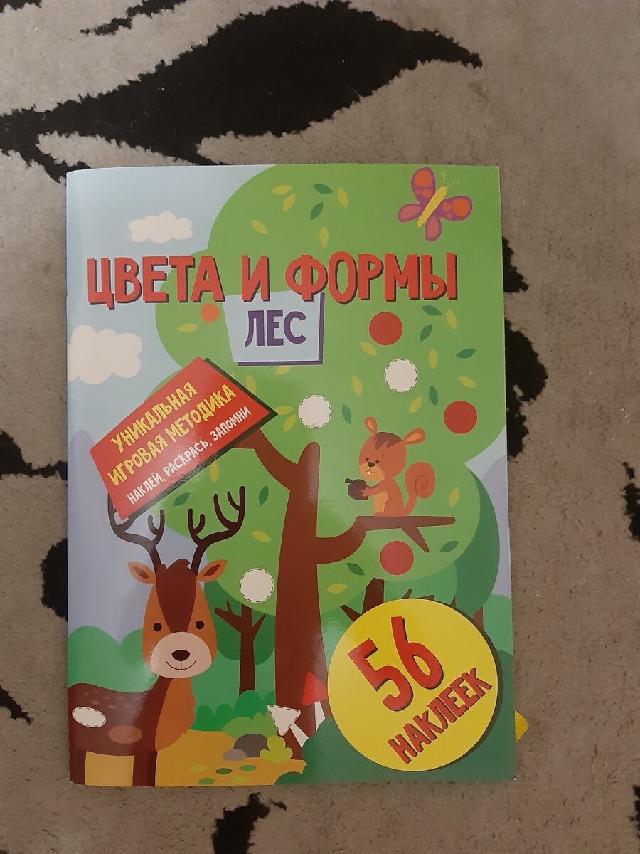 Сегодня хочу рассказать про книгу с наклейками для малышей. Моему сыну 1 год 3 месяца. Все "испытания " проводились на нем. Цвета и формы. Лес. Это развивающая книжка с 56 наклейками,а так же есть картинки для раскрашивания. В книге 24 листа и в середине разворот с наклейками. Наклейки легко отделяются,сын самостоятельно может их отделить. В основном это круги,квадраты и треугольники, которые нужно наклеить по образцу и несколько наклеек с изображением животных для свободного вклеивания. Для нашего возраста это сложно,поэтому клеим куда захочется, но для 2-3 лет очень хорошее пособие. В этой серии 4 книги, пойдём докупать остальные,так как сыну понравилось. Дешево (55 рублей), познавательно(изучаем цвета,формы,животных).