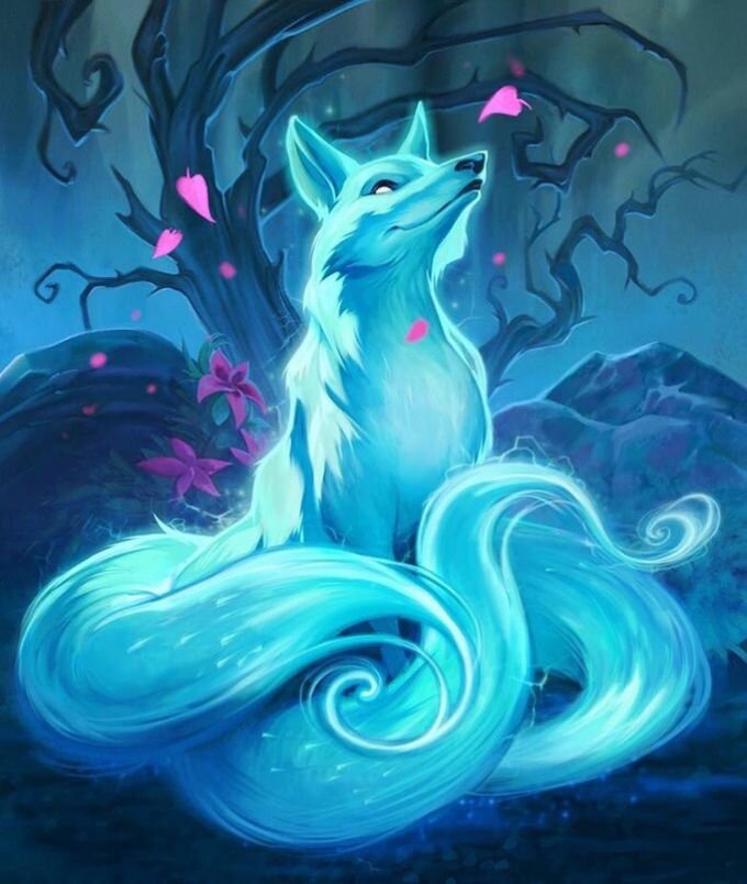 Когда кицунэ получают девять хвостов, их мех становится серебристым, белым, или золотым. Эти кюби но кицунэ («девятихвостые лисы») получает силу бесконечной проницательности. Похожим образом в Корее говорится, что лис, прожившая тысячу лет, превращается в кумихо (Kumiho) (дословно «девятихвостый лис»), но корейский лис как правило изображается злым, в отличие от японского лиса, который может быть как благожелательным, так и недоброжелательным. В китайском фольклоре также есть «лисьи ду́хи» (хули-цзин), во многом схожие с кицунэ, включая возможность обладания девятью хвостами.