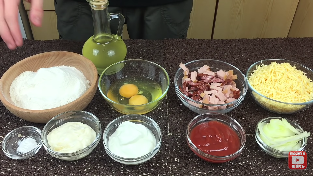 Настолько просто, что по этому рецепту готовит даже мой сын. Не верите? Убедитесь сами! ИНГРЕДИЕНТЫ: Тесто: Яйца 2 шт. Мука 7 ст.л. с горкой Сметана 4 ст.л. Майонез 3 ст.л. Разрыхлитель 0.5 ч.л. Растительное масло для смазывания. Начинка: Колбаса 180 гр. Сыр 150 гр. Маленькая луковица 1 шт. Кетчуп 4 ст.л. ************************************************************************ А сейчас, ПОШАГОВЫЙ РЕЦЕПТ: 1. Соединить сметану, майонез, взбитые яйца. Взбить. 2. ЗАМЕШИВАЕМ ТЕСТО. Соединить муку и разрыхлитель теста. Перемешать. Добавлять небольшими порциями в жидкие ингредиенты, помешивая. Замесить. 3. ФОРМИРУЕМ ПИЦЦУ. Смазать маслом дно и бока сковороды. Сюда отправить тесто, сверху кетчуп, затем, нарезанный лук, нарезанную колбаску. 4. Сверху засыпать сыром. Накрыть крышкой. Поставить на 15 минут на огонь. Через 15 минут выкладываем пиццу на тарелку... И ВСЁ!!! Это и перекус и быстрый ужин. ПРИЯТНОГО АППЕТИТА! Если вам понравилась ИДЕЯ, ставьте лайк, поделитесь этим ВИДЕО в