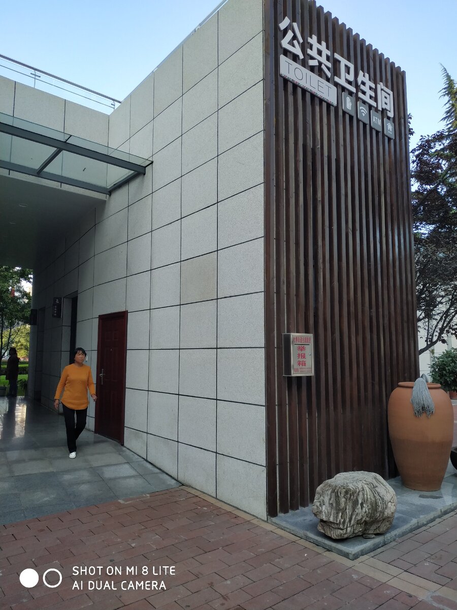 В среду, во время прогулки встретил нечто невероятное: туалет с вай-фаем! Более того, в комплекте был и банкомат, и магазин; в качестве дополнительной услуги - зарядка аккамуляторов. Что за чудо? - подумал я. Оказалось все просто. Это скорее комплекс услуг населению, а не отхожее место. Просто самый важный тут туалет. Согласитесь: без него бывает сложно в крупных городах. Появился, скорее всего в годы "туалетной революции". Случилось это после того, как правительство Китая разумно решило, что у них великая культурная страна и негоже гражданам и гостям бегать за гаражи- вот и строят места общего пользования. Один из плодов этого строительства перед вами. Вот и стоит на площади туалет, а дальше можно найти все остальное, по списку. Правда вай-фай можно поймать и прямо во время процесса.