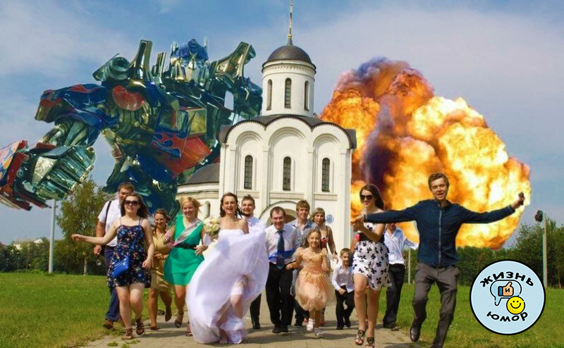 "Умом Россию не понять" - такие слова классика вспоминаются когда видишь подобные фотографии. Да, что бы такое сделать нужно проявить недюжую фантазию и находчивость. Давайте взглянем на подборку смешных, обработанный фотографий, которые могли сделать только в России. Открывает нашу фотоподборку типичная русская свадьба. Взрывы на заднем плане, Оптимус Прайм в роле друга жениха, в общем, все как надо. Нам остается лишь порадоваться за новоиспеченную ячейку общества. Счастья и любви вам, боги фотошопа! А этому мужчине можно лишь поаплодировать. Нужно обладать серьёзной самоиронией, чтоб вставить свое лицо вместо обезьяньего. Справедливости ради, стоит отметить, что мужик действительно вписывается в компанию. Определенно лайк Ну а эта роковая дама отлично вписалась в компанию гепардов. Получилось весьма забавно. Что дальше? Фотожаба на фоне кошечек? Отфотошопленные свадебные фотографии - как отдельный вид искусства. Эта, очевидно, называется "Твоё сердечко у меня на прицеле". Весьма
