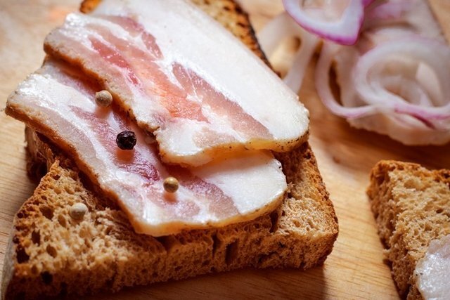Сало в пакете получается - просто "язык проглотишь"! Пока думал, как же Вам пошагово рассказать, вспомнил, что осталось немного в холодильнике - побежал и сразу пару бутербродов "слопал", а то "слюнями" бы зашёлся. Рецепт приготовления такого безумно вкусного сала был подслушан в электричке. Где рядом сидевшие две дамы делились секретами кулинарии. Сам рецепт был быстро записан в блокнотик. Мигом по дороге домой были приобретены все ингредиенты и уже дома приготовлено. Продукты: • шмат самого сала, • пакетик приправы для сала, • смесь специй для шашлыка - также пакетик, • чайная ложка сахара, • молотый чёрный перец, • чеснок - 4-5 зубчиков, • соль - 3-4 чайной ложки. Продукты из расчёта на кило-полтора главного ингредиента. Сало лучше выбрать с прослойкой мяса. Чтобы сало не получилось пресным кладите богато соли. И чеснока много не бывает, но это уже на свой вкус. Приготовление: Делим шмат сала на кусочки, чтобы потом было удобно делать нарезку и сразу же на вилочку или на ржаной хл