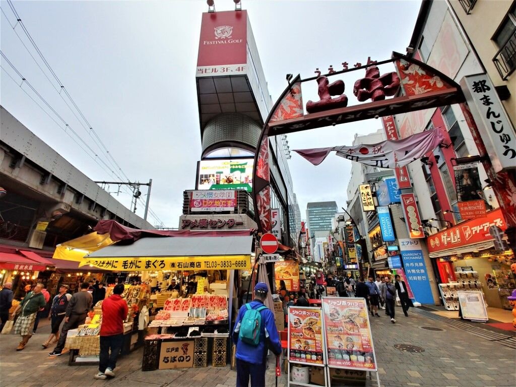 Хотите посмотреть, как выглядит среднестатистический японский базар? Вот один из них, который находится недалеко от центра японской столицы, я и решил посетить. Естественно, с умыслом - во-первых, здесь можно сытно поесть гораздо дешевле чем в городских кафе и ресторанах, во-вторых, здесь можно купить свежую рыбу и морепродукты: для тех, кто снимает апартаменты, самое то. Про уровень цен на рынке судите сами - курс такой - 590 рублей за 1000 йен. Итак, вот он, рынок. Количество народа примерно такое же, как если бы вы были на базаре в российском провинциальном городе или, например, в израильской Хайфе. То есть люди есть, но не сказать, что тут непроходимая толпа. Обратите внимание, тут чисто. Сравнивая с подобными торговыми рядами в арабских странах, можно сказать, что вообще идеально. Там бы обязательно под ногами валялись рыбьи хвосты, обрывки зелени, или части рогатого скота. Японцы - известные рыбоеды. Рыба употребляется как в сыром, так и в варено-жарено-пареном виде. Потому
