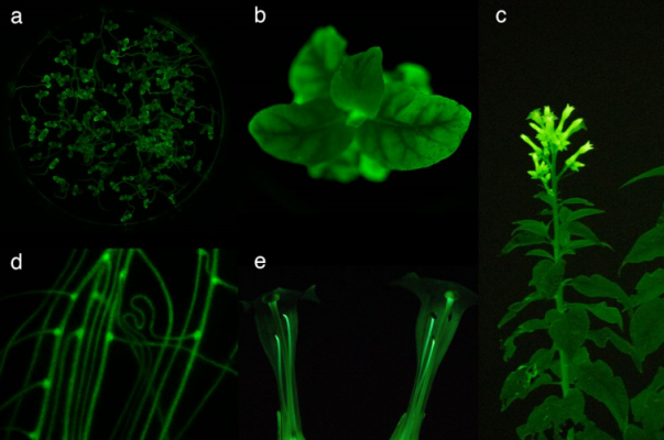 Учёным удалось заставить табак светиться без добавления каких-либо веществ или облучения ультрафиолетом. Специалисты перенесли в структуру ДНК растения ген светящегося гриба.