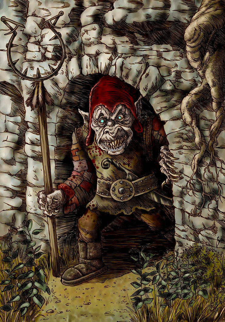 Великий писатель и знаток таинственного У. Б. Йейтс утверждал, что тем, кто любит рассказы о добрых и забавных проделках духов и гоблинов, нужно побывать в Ирландии, а тем, кого интересуют страшные истории, следует посетить Шотландию. В самом деле, именно в фольклоре Шотландии можно встретить, например, такое существо, как гоблин Красный колпак, которого считают одним из самых злобных и кровожадных фэйри на Британских островах. Пограничье между Англией и Шотландией на протяжении многих веков было ареной ожесточенных сражений. Все здесь словно пропитано удушающими флюидами смерти. Гоблины Красные колпаки стали зримым воплощением того духа зла и ненависти, который двигал людьми, беспощадно убивавшими друг друга. Красные колпаки селились в разрушенных замках, каких много на землях англо-шотландского пограничья. После того, как заканчивалась очередная битва, эти существа обходили поля сражений и окрашивали свои колпаки, окуная их в кровь убитых. Отсюда этот «вид» гоблинов и получил свое