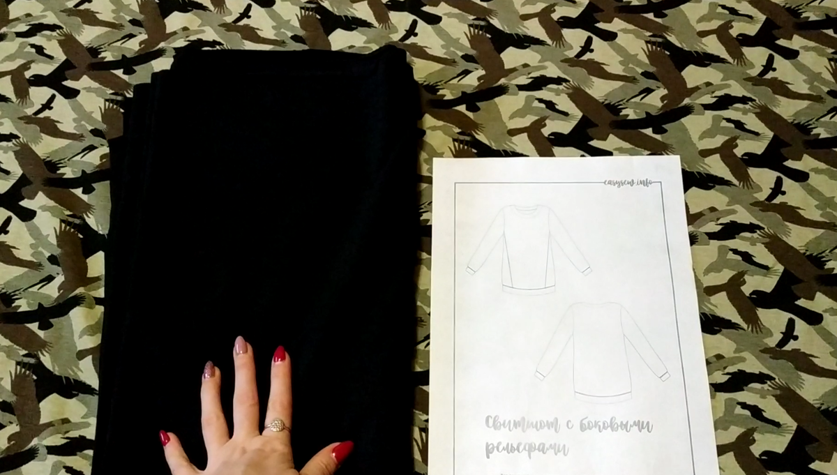 При таком огромном многообразии тканей в магазинах, хочется скупить их все и шить красивУщие вещи! Хочу показать вам, как можно быстро сшить свитшот, почти не имея навыков шитья. Записала пошаговое видео пошива интересного свитшота. Скачиваем выкройку с сайте easysew.info Распечатываем и склеиваем. Полочку и спинку хочу выкроить из интересного камуфляжа, птички. Это футер с лайкрой.