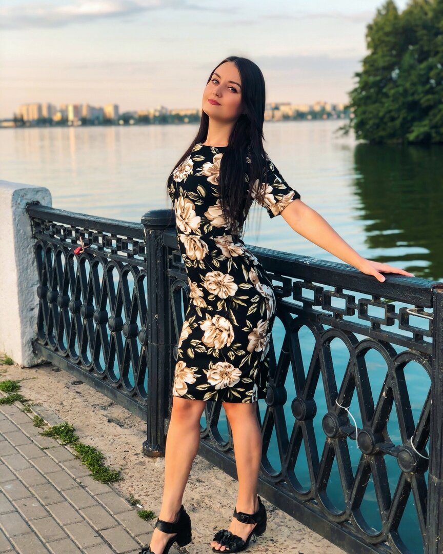 Замечательное платье-футляр, которое подчеркнёт женственную фигуру и сделает её визуально стройнее. У продавца представлено в 2 однотонных оттенках и 2 цветочных расцветках. Мне приглянулась цветочная, и выглядит она великолепно! Бежево-белые крупные цветы на чёрном фоне.