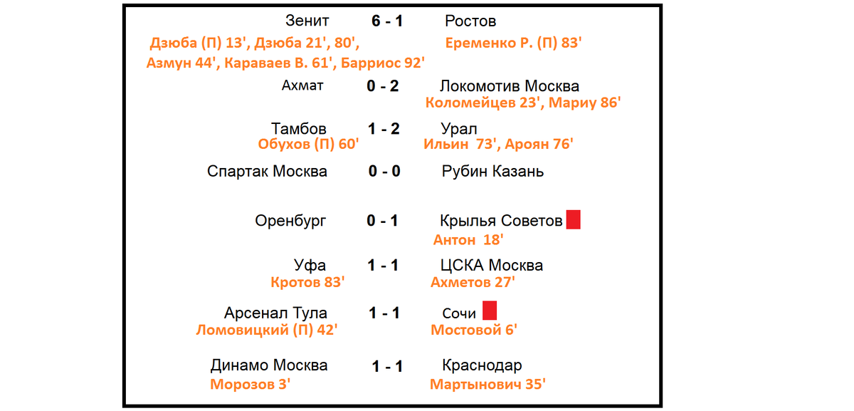 Чемпионат России. РПЛ. 13 тур. Результаты, таблица, расписание.