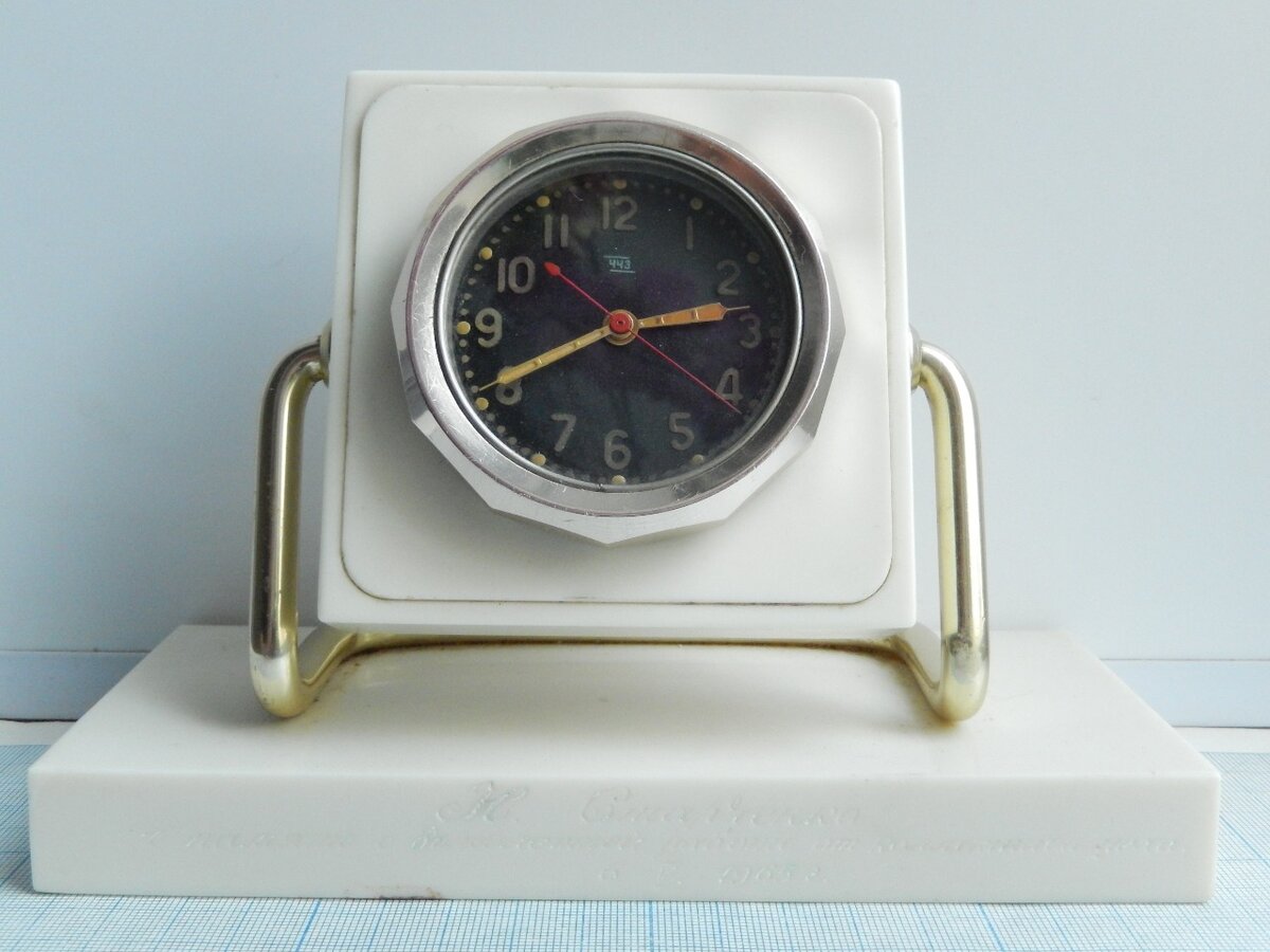 Приветствую Вас на моем канале! В субботу как на работу! Мы с женой, как всегда в этот день недели, ходим за покупками, но это не продукты и не хозтовары. Это красивые старые и оригинальные вещи для коллекций или для антуража. В эту субботу мы посетили Удельный рынок, в простонародье – «Уделку». Приобрели там интересные вещи, которые сегодня и хочу Вам показать. Первой покупкой стали танковые часы, установленные в тяжелую подставку из карболита (по словам продавца). Интересные, оригинальные, солидные часики, изготовленные на Челябинском часовом заводе. Такие (или подобные) часы устанавливались в танки и другую наземную технику. Но мой вариант, я думаю, гражданская продукция. Подобные часы продаются с разным исполнением подставки: из мрамора, пластика, карболита и др. Встречаются один в один, как и мой экземпляр, а это значит, что производство заводское. На передней части нижней подставки есть гравировка, которая говорит, что часы подарены в 1965 году. На задней крышке указан ГОСТ 1958-