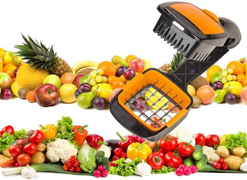 Доброго времени суток, любителям кулинарии и всем любителям облегчить себе жизнь на кухне. Как часто для праздничного стола или повседневной готовки Вам нужно было нарезать что-то быстро и ровно? Мне довольно часто) Мне как человеку не использующему всевозможные приспособления для кухни было интересно попробовать правда все так красиво как в рекламе? И вот вчера я приобрел данный девайс. Купил я его в местном магазине за 400 рублей в нашем городе, обещают супер быструю и качественную нарезку овощей и фруктов в одно мгновение. В комплекте идет сами щипцы назову их так, четыре насадки и контейнер для складывания нарезанного, выглядит все это дело вот так. Как видите все довольно просто, насадки могут использоваться по одиночке или комбинироваться между собой для нарезки: толстых или тонких ломтиков, кубиков, палочек и четвертинок. Контейнер плотно отлично закрывается, но мне показался маленьким, от силы на 150 мл. Пластик хороший прочный, лезвия насадок довольно