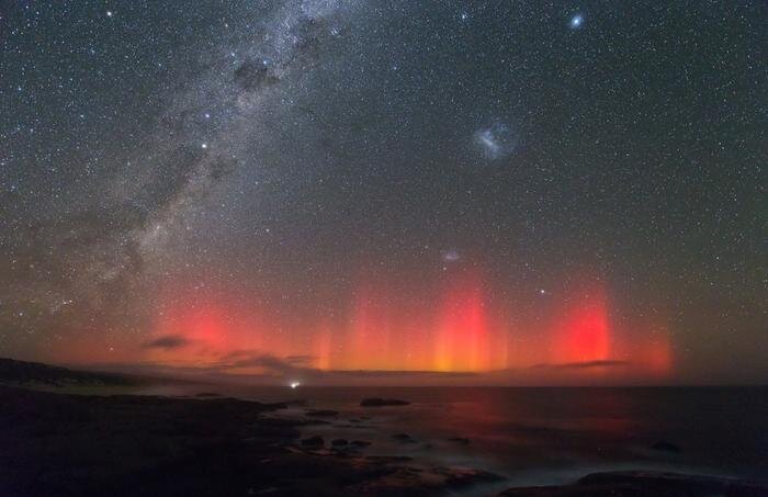 Удивительное красное свечение они заметили в нескольких километрах от самолета. Приблизившись к месту они увидели, что источник света находится глубоко в водах океана, а на поверхности проявляется красными точками. Свет от этих точек был настолько ярким, что поднимался вверх столбом на много метров.