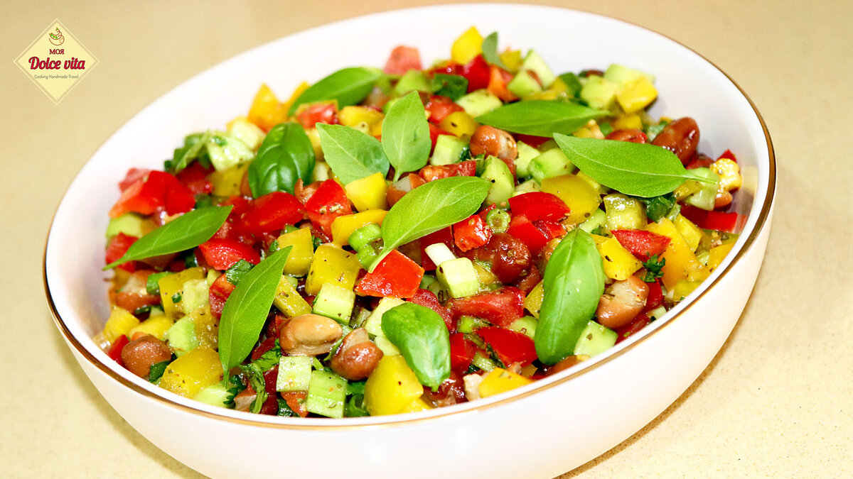 Салат с фасолью. Салат с овощами и консервированной фасоли. Супер заправка для салата. Моя Dolce vita