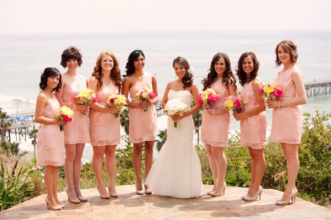 Разбираем отличительные черты: нарядов невесты и подружек Каждая женщина хочет выглядеть на празднике достойно. Но, свидетельница не должна затмевать образ невесты – это давно известный факт. В идеале, ее образ должен сочетаться с одеждой невесты и стилем свадьбы. Допускается менее официальный фасон одежды подружки. У свидетельниц открываются широкие возможности поиграться с цветом и фасоном, длиной наряда. Не обязательно подбирать одеяние в пол. Если у невесты нет свидетельницы, но ее сопровождают несколько подружек, то всех их рекомендуется выделить из общего окружения с помощью одежды и аксессуаров. Например, подружки невесты могут одеться в одинаковые платья для создания целостного восприятия на фотографиях. Одинаковые наряды подружек – один из трендов 2015 года. Их наряды могут быть однотонными для воссоздания классического сценария свадьбы или с узорами, подходящими для свадьбы в стиле Sweet Dreams или Rustic. В любом случае, платье невесты должно быть более нарядным. В текущем