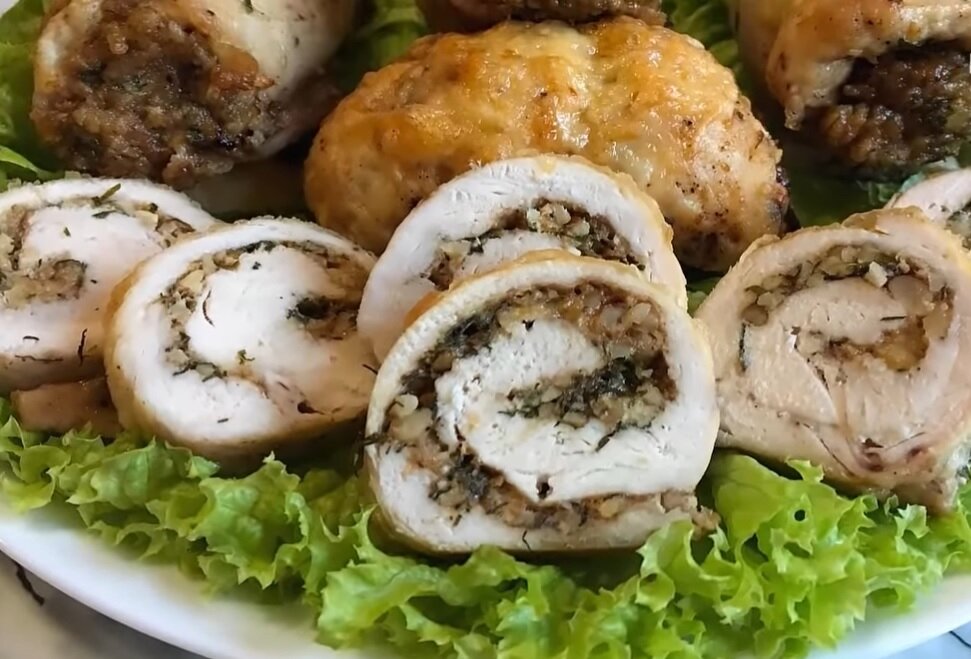 Куриные рулеты с интересной начинкой. Очень вкусно.