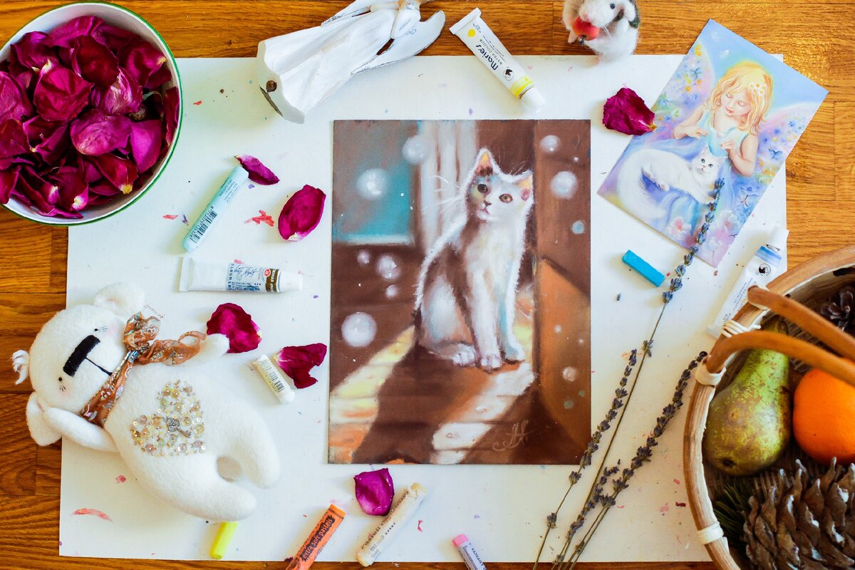 Как я пришла к технике сухой пастельной живописи на бумаге Скажу сразу я - многопрофильный художник. Т.е. пишу во многих техниках: масло, акрил на холсте и шелке, скетчинг, акварель. Но живопись пастельными мелками - любовь почти с первого взгляда:) Так вот, о стиле. В тот момент, когда меня увлекла техника сухой пастели на бумаге, я была буквально одержима. Мне нравилось держать ее в руках, подбирать бумагу и засиживаться вечерами и даже ночами, тихо шурша мелками и карандашами по текстуре листка. В моей голове жили образы, истории. Да, они были живые и буквально вдыхали после своего появления на бумаге, словно в иллюстрированной сказке. Теперь, оглядываясь назад, самые первые рисунки не кажутся мне столь техничными, как сейчас. Но, при размещении их на сайте (тогда Ярмарке Мастеров), сразу же пошли заказы, буквально один за одним. Люди это чувствовали, ощущали — тот поток вдохновения и энергии, которую я вкладывала в каждую иллюстрацию. В такие моменты ты не замечаешь ход времени, а